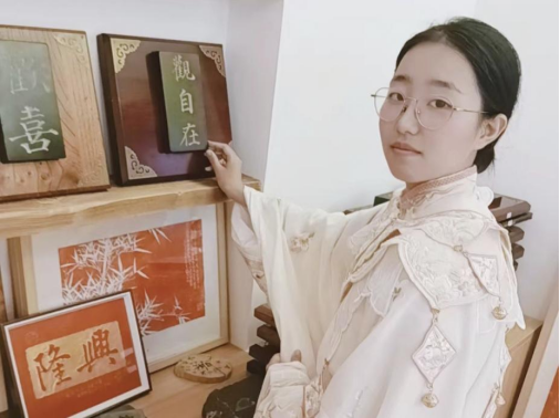 体验开始前,为更好地还原古人拓片的真实场景与状态,实践团成员更换了汉服。通过讲解,他们了解了基本的操作过程:首先是清洁上纸,用毛巾、宣纸、喷壶来清洁拓版,打湿宣纸。然后打纸入凹,用棕刷拍打宣纸,使其与拓版贴合。接下来是敲击紧固,利用拓锤,捶打宣纸,使其与拓版贴实。最后拓包上模,用拓包、墨汁使拓包均匀上墨。