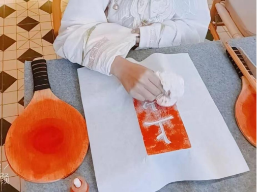 在学习了理论知识之后,实践团成员进行了实际动手操作。在老师的带领下,一步一步完成较为简单的拓片作品。在此期间,成员更深入地了解到拓片技艺是一种精细而独特的艺术形式,通过将建筑物、雕塑、碑文等物体的纹理和形态传递到纸上,为观者呈现出精美的图案和文化故事。同时,通过将纸张覆盖在物体表面并使用绘画工具轻压,艺术家可以捕捉到建筑的细节、雕塑的纹理以及古老碑文的文字。这种技艺不仅仅是一种艺术表达形式,更是一种连接过去与现在、传承文化与艺术的纽带。