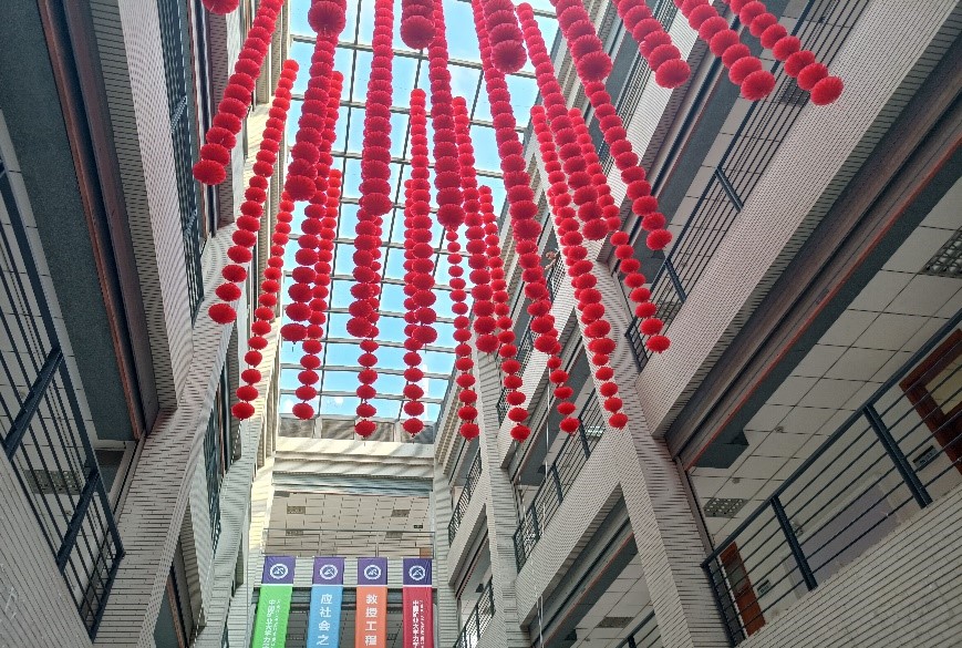 下午两点,各位志愿者准时到达学院楼集合,与学院楼的管理人员沟通协调过后,志愿者们便开始了相应的布置工作。活动过程中,志愿者们分工明确,根据教程耐心地制作装饰品,并将装饰品一一布置到点。尽管过程中偶尔有些小差池,但志愿者们同心协力,相互帮助,总能将问题摆平。活动结束前,志愿者们也不忘将多余的材料和产生的垃圾一一清理干净。经过一个多小时的劳碌,志愿者们高标准地完成了本次志愿活动,将学院楼装点得焕然一新。