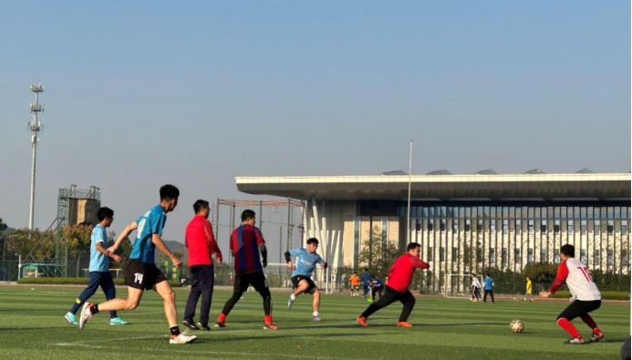 研究生会在南湖校区第二运动场开展了研究生学术文化节系列活动之“我与导师一起”足球赛。