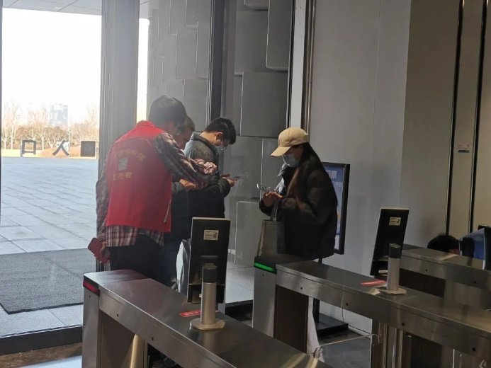 在博物馆门口引导游客预约入场