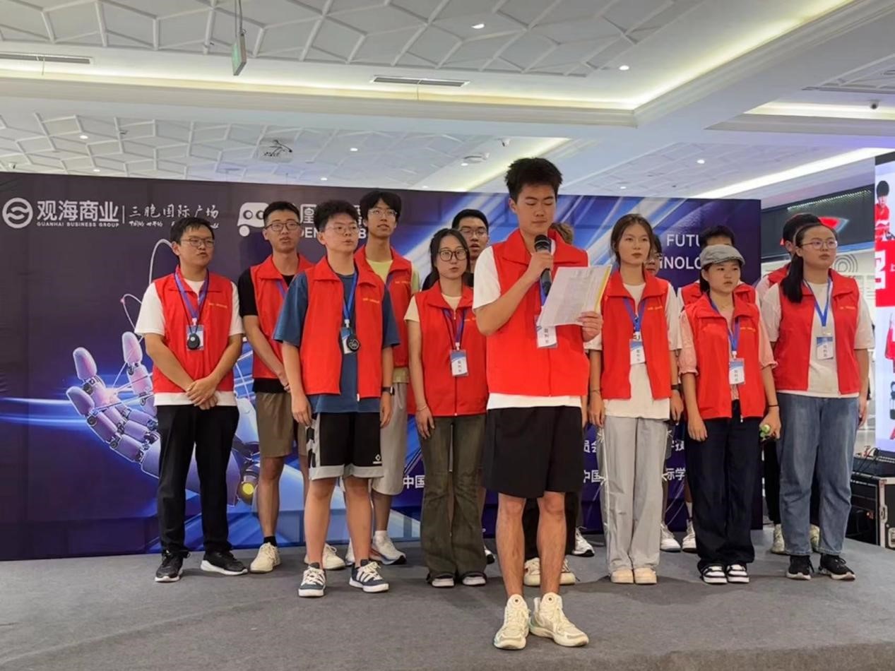 开幕式上,负责人冯悦姿强调希望通过这场大赛,能为青少年提供一个展示自我、挑战极限的舞台,在他们心中种下科技的种子,激发无限可能的创新思维。随后,在队长高健超的带领下,志愿者们庄严宣誓,他们被赋予了测分员和安全员的重要角色。测分员们严谨计算每一项比赛成果,确保每一个分数的准确无误,为选手们营造一个公平公正的竞争环境;安全员们细心维护秩序,确保每一位参赛者的安全,同时也为比赛的顺利进行保驾护航。