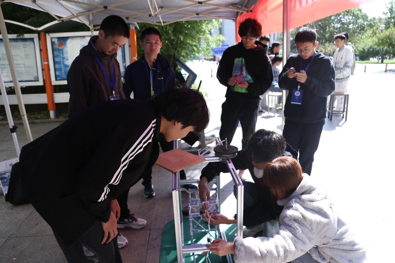 参赛选手需要在比赛开始前自由组队,在规定时间内领取所需材料并制作参赛模型。比赛在上午8点正式开始。赶到赛场的各组选手在工作人员的指导下首先对参赛模型进行称重,随后进行加载。这个过程要求各组人员逐级加载共5级的砝码。现场,参赛选手们紧张但有序地进行加载,观众也认真关注比赛进展,不时低声讨论各模型的美观和稳定性。每当有一组队伍的模型成功通过5级加载,现场便爆发出阵阵掌声。队伍成员激动地与他们建造的模型合影,而那些未能如愿的队伍则决定明年再来挑战。最终,比赛于当日下午6点结束。