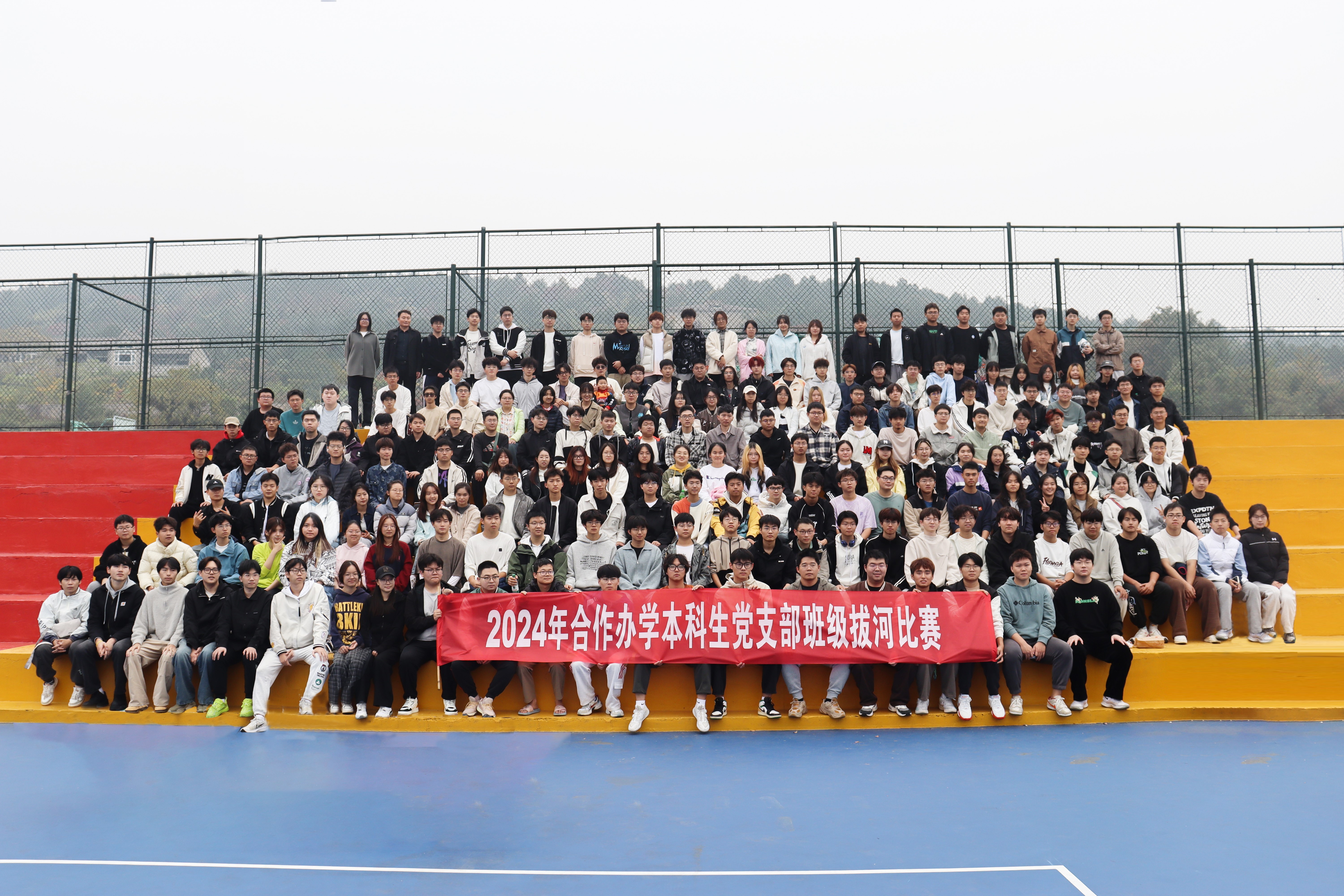 为丰富同学们的校园文化生活,加强合作办学班级、年级同学之间的沟通交流,增强集体凝聚力和同学之间的团结协作精神,合作办学本科生党支部于2024年10月27日在桃苑篮球场举办了一场拔河比赛。合作办学2022级、2023级、2024级全体同学共15个班以班级为单位参与了此次比赛。