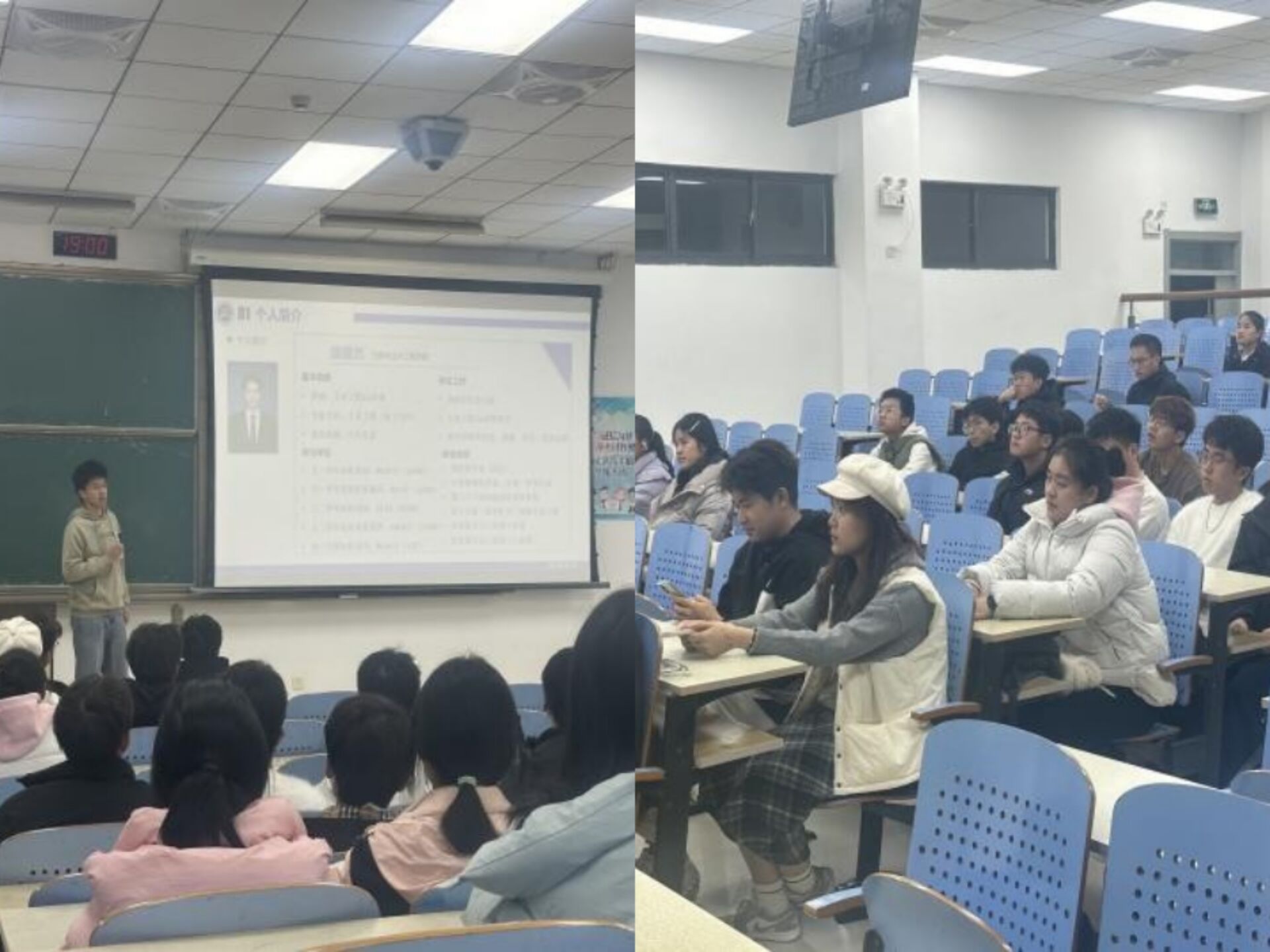 多位国奖获得者作为嘉宾,他们结合自身经历,从学习方法、科研探索、时间管理、竞赛参与等多方面进行了深入分享。徐盛杰同学分享了在平衡学业、社团活动与竞赛准备过程中的经验,强调合理规划与坚持不懈的重要性;李浩宇同学则聚焦科研项目经历,讲述从选题到研究再到成果产出过程中的挑战与收获,鼓励同学们积极投身科研创新;谢剑勇同学给了同学们几点建议:平衡好时间,兼顾学习、学生工作、学科竞赛,提高行动效率;稳扎稳打、目光长远,胜不骄、败不馁;公平竞争,学会与周围同学合作共赢;方鸣蕾同学详细介绍了自己如何构建系统的学习体系,高效利用课堂与课余时间,实现学业成绩的稳步提升;陈梦涵同学针对如何获得奖学金以及大一同学的学习生涯规划和学习方法进行了详细的分享。