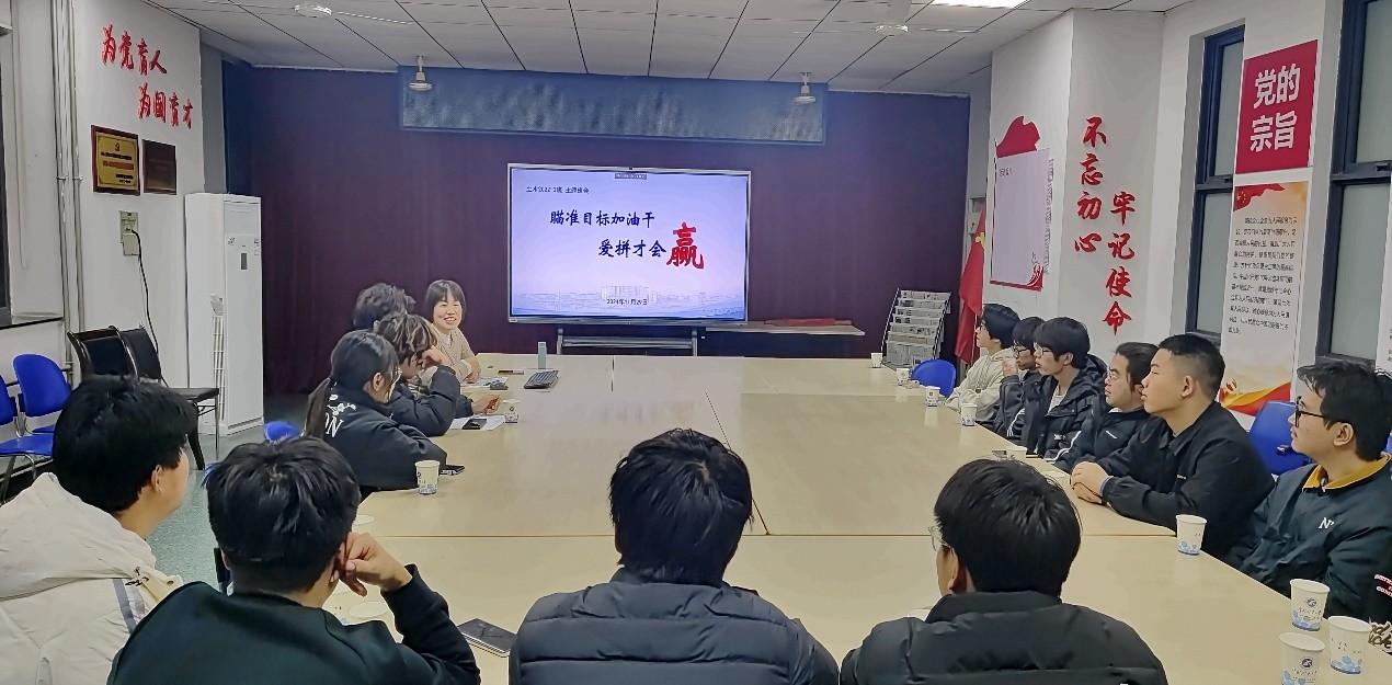 为帮助同学们明晰学业与职业发展方向,积极应对压力与挑战, 11月29日,土木工程22-3班在学院楼B205举行了一场以“瞄准目标加油干,爱拼才会赢”为主题的班会活动。在班主任朱玉晓的精心组织下,同学们参与热情高涨,班会现场气氛热烈。