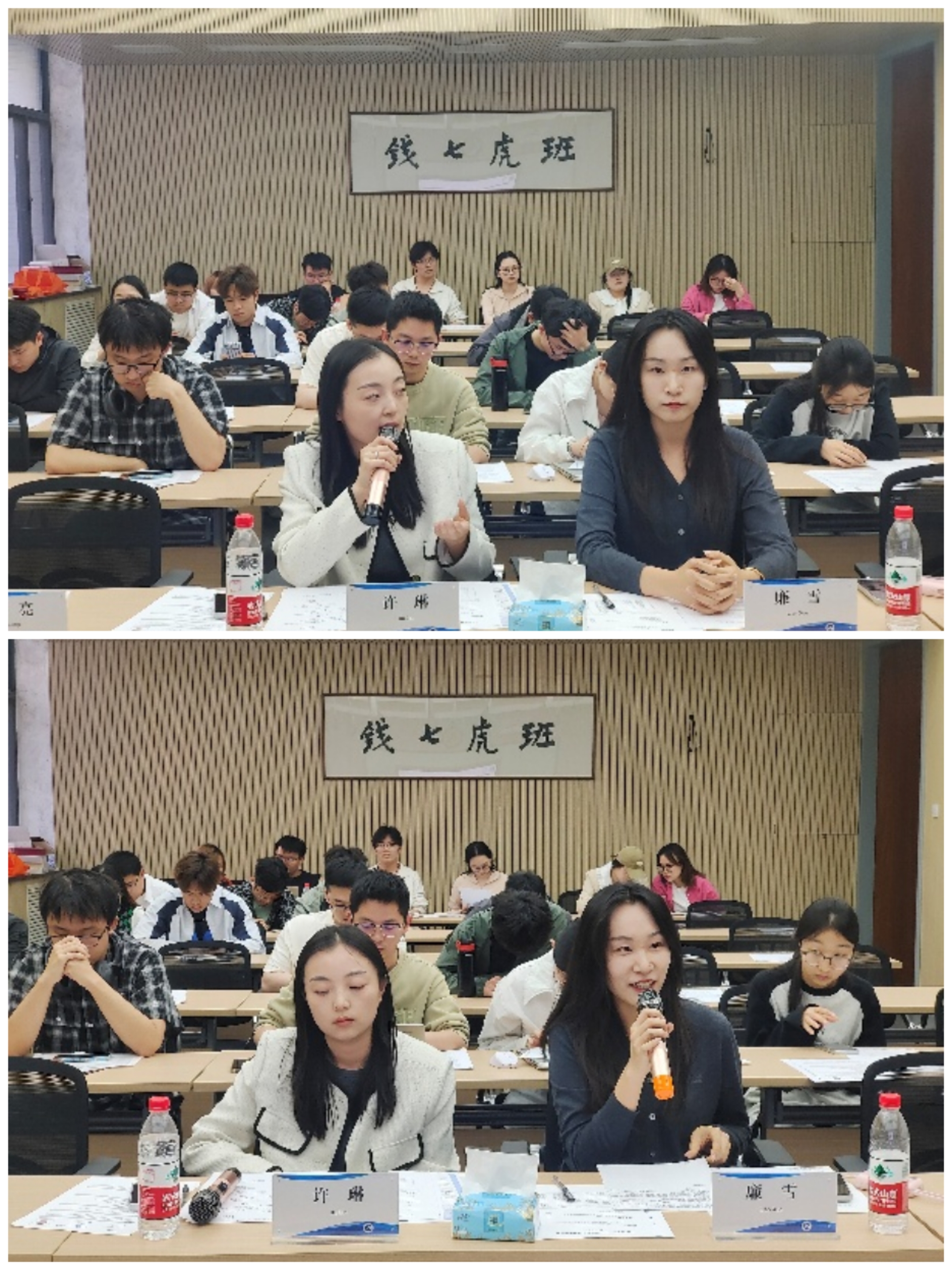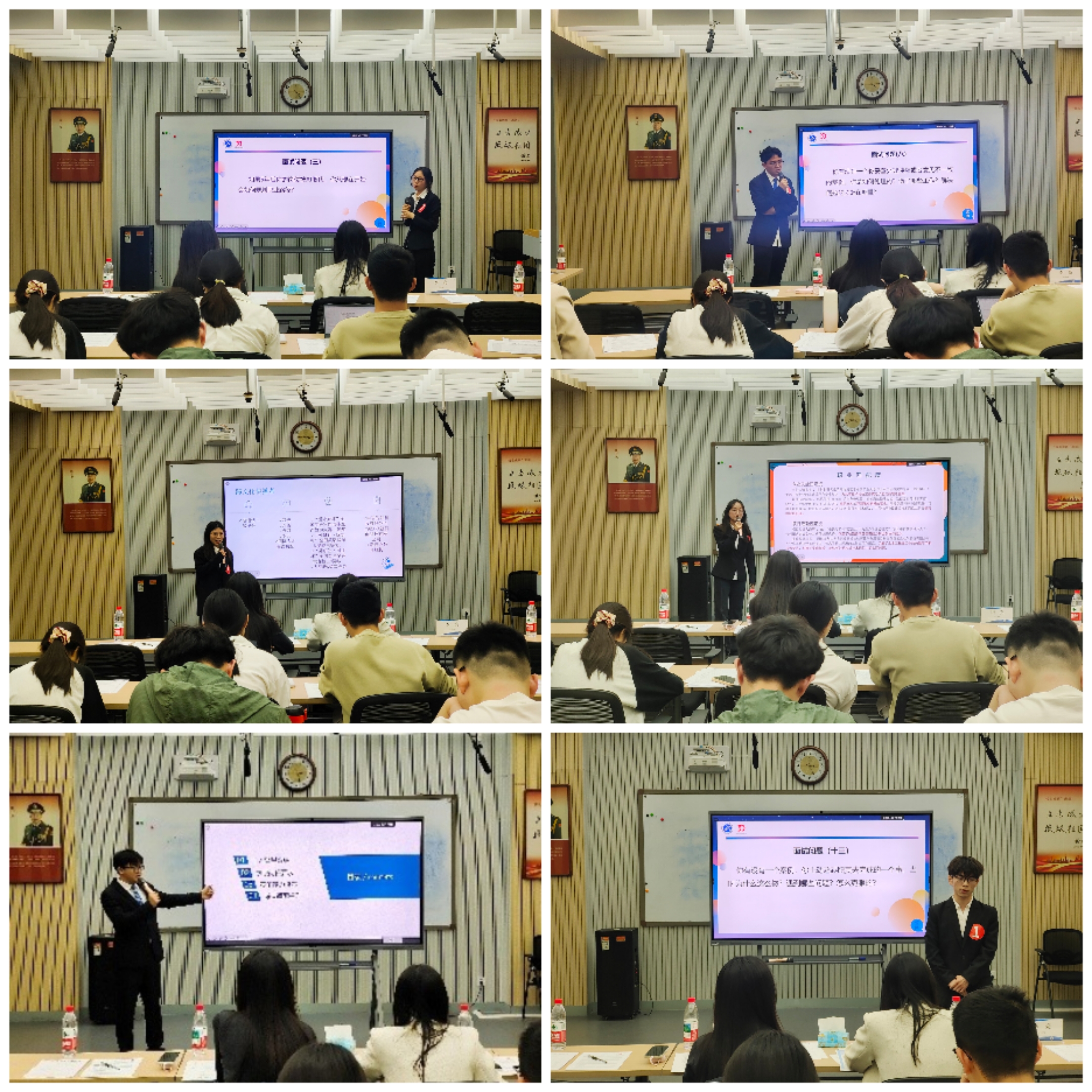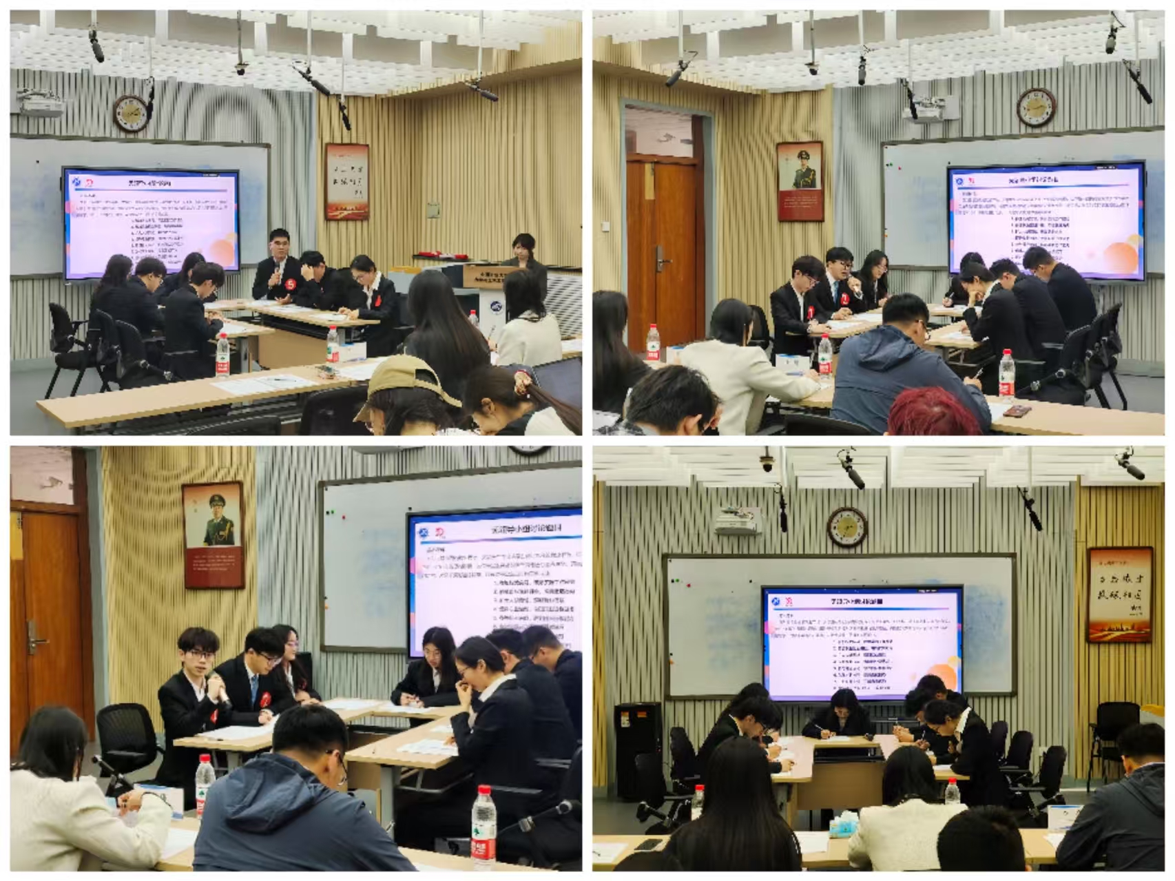 大赛环节设置了无领导小组讨论、个人展示、压力面试等环节。在无领导小组讨论环节,选手们围绕固定议题,既要清晰阐述个人见解,又要捕捉他人观点亮点、反驳不合理之处。评委从沟通表达、问题分析、临场应变等维度细致打分,对同学们的表现进行评价。在个人风采展示环节,同学们通过借助PPT,将个人的基本情况和求职优势向评委们进行了详细展示。在压力面试环节,同学们随机抽取问题并进行作答,同学们展现出了较强的的应变能力。经过激烈比拼,王申港凭借卓越表现斩获特等奖,童海丹荣获一等奖,施翌、张孟雪荣获二等奖,邱朔、杨雨霈、隆劲豪荣获三等奖。最后,两位评委对同学们的表现进行了点评,就如何更好的参加求职面试进行了针对性指导。