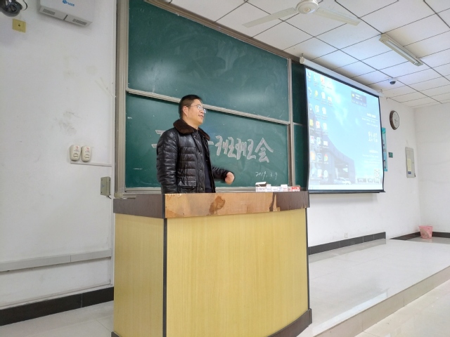 当日下午4点整,班会正式开始。第一阶段,班长高烽玲同学向参会人员汇报了班级2018-2019学年度成绩情况,分析班级成绩优劣情况,并对本次班会主题进行了简要的阐述。第二阶段,优秀学长学姐和班级同学交流创优良学风的方法。孙龙龙学长和杨燦学姐分别从班委和普通同学两个角度阐述了自己的看法。班委应当以身作则,做好领头军的作用而同学们也应当从自身出发,为创优良学风贡献自己的一份力量。第三阶段,班主任宁德春老师发表讲话并对此次活动进行总结。在讲话中,宁德春老师强调了团体意识的重要性。优良学风的建设离不开每一个同学的努力。最后,宁德春老师充分肯定了本次主题班会的意义,并对班级新学期表示充满希望。