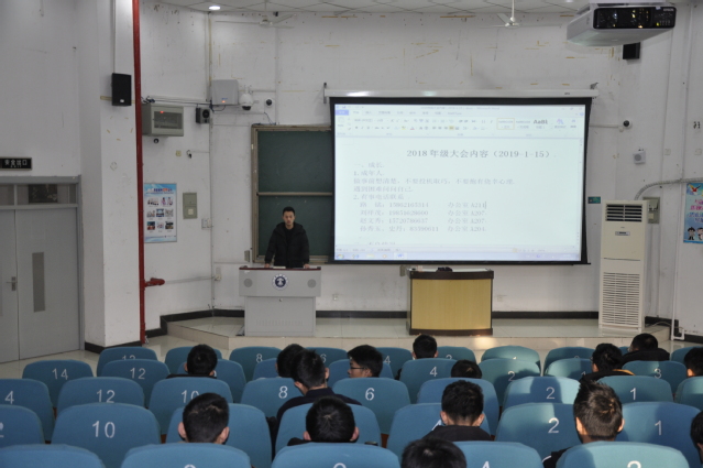 考试周已然结束,寒假即将到来,为了整顿考试中出现的学风问题,增强学生的安全意识,对寒假中同学们可能遇到的事故做出预防,1月15日下午三点至五点,18级辅导员路铭老师给大一学生在博2C102与C202召开了安全大会。