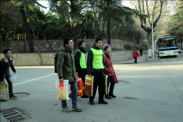每年新春来临之际,土木学院会早早地准备好大米,食用油等生活必需品,给退休老教师们送去祝新年祝福。今年,在土木学院辅导员曹鹏老师的组织下,近二十名志愿者作为代表赴文昌校区教职工之家给老教师们送去准备好的慰问品。