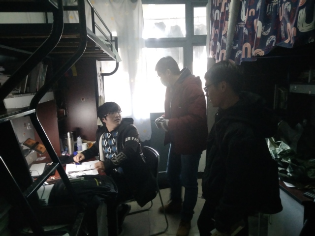 寒假来临,为排查安全隐患,提高防范意识,确保学院学生度过安全愉快的假期,1月22日下午,学院专职辅导员曹鹏、李亮、路铭带领兼职辅导员对2015-2018级本科生宿舍进行了全面的安全检查。