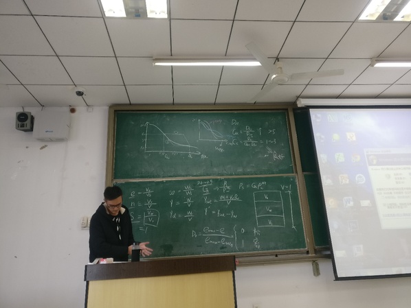 下午2点30分,授课活动正式开始。参与交流的同学除了本年级的同学,还有部分留学生和孙越崎学院的同学。因为课程内容较多,四位授课同学事前进行了分工,每人结合自己的学习心得,主讲其中一部分内容。授课同学将课本内容进行了浓缩,总结了具体的知识点,针对课程的重要公式进行了推导和演绎,讲解了重点习题。授课同学认真负责的态度、现场丰富充实的授课内容获得了全体同学的多次掌声。活动结束后,主讲同学杨大勇说道:“本次的授课活动前,我将土力学的内容做了一个系统性的总结,这次向同学们分享了我对课程的理解,提升了我专业英语的水平,让我自己对课程有了更深的感悟。”