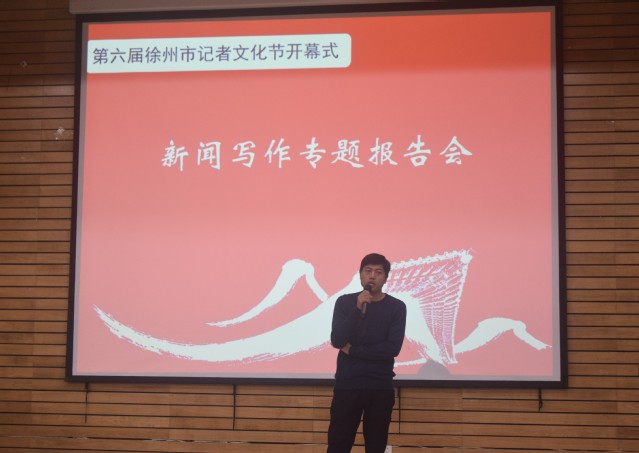 2017—2018年度优秀院级传媒中心表彰大会,徐静同学宣读了获奖名单。其中,土木学院获评“组织先进大学生传媒中心”。最后,李秀老师对开幕式做总结并邀请资深媒体人马志亚做专题报告。至此,第六届徐州市记者文化开幕式圆满结束。