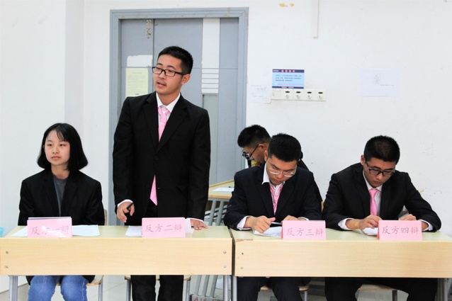 本次辩论赛将18级新生参赛的15个班级分为7组两轮,第一轮4个组,第二轮3个组,剩1队轮空。比赛开始后,参赛双方就论点进行清晰的阐述,简明扼要,字字珠玑,充分地说明了己方观点。