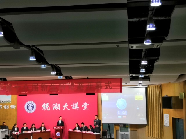 晚上七点,新生辩论赛开幕式准时开始。主持人对比赛环节做了简单介绍后,比赛随即开始,作为反方的土木学院就“灾难中的自私行为不应该谴责”的辩题与持“灾难中的自私行为应该谴责”观点的公管学院展开激烈交锋。辩论过程中,土木学院辩论选手立足于自己的观点,与对方展开激烈的一对一攻辩和自由辩论,对辩题进行了深入挖掘,举出生活中的事例进行阐述,同时找出对手的漏洞和不足,一一加以反驳。辩论选手们的慷慨陈词将开幕式现场一次次推向高潮高潮,给观众献上了精彩的视听盛宴,赢得了在场评委和观众的阵阵掌声。在开篇立论、攻辩、小结、自由辩及总结陈词五个环节结束后,评委们进行了总结和闭幕致辞。最终,辩论赛开幕式在全体人员热烈的掌声中圆满落下帷幕。
