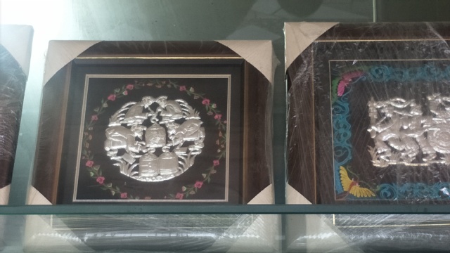 队员们从师傅那里了解到用于装饰衣服上的银饰上面会留有小孔,以便于将其绣在服装上。上衣裁剪缝制好之后,在指定位置上,通常是袖子上、肩膀上、背部、胸前以及腹部部分都绣上薄而做工精细的银片,琳琅满目的银片几乎遍布一整件上衣,华丽而庄重。