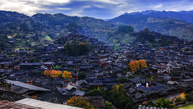 苗族盛装的美是那种令人眼前一亮的美艳,构图讲究严谨、对称、协调,每幅绣图均有主、副图案,构图内容取材广泛,天空、大地、人、神、植物、动物……无奇不有,并且融合了远古和近现代风格。