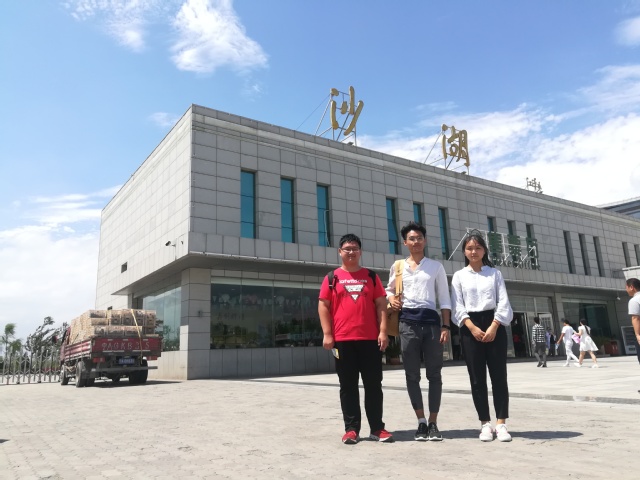 当天下午,实践团抵达沙湖生态环境治理区,先后与两位游客和一位工作人员就风沙治理的问题进行讨论。在交流的过程中,治理人员多次感叹近些年来风沙治理后,环境得到了较好的改善,两位游客也表示环境治理的成果超出他们的预期;同时,治理人员也指出一些环境治理的不足之处,将自身体会分享给调查人员。在交流中,调查员了解到在春秋两季,由于气候,风沙侵袭仍然偶有发生。调查成员记录一系列问题,将其作为第一手资料。