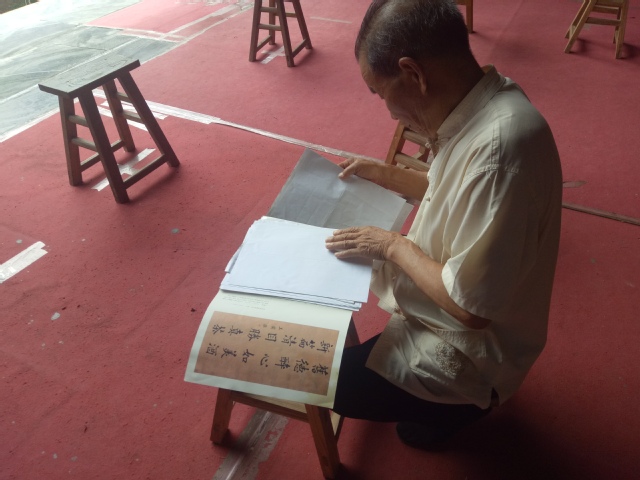 老师傅打开珍藏的乐谱向团队成员介绍老腔中的常见桥段,其中包括《将军一声震山川》、《关中古歌》、《张飞战典韦》、《临潼斗宝》、《白鹿原》、《征东一场总是空》、《王文秀访永宁》和《秦琼打粮》,其中以《秦琼打粮》最为经典。之后,老师傅向团队成员展示了戏台上用到的乐器。惊木梆子节奏鲜明,板胡二胡交相呼应,月琴钟铃悠扬,给高亢的气氛中又添一缕柔美。还有马锣、引锣、大锣干鼓等,更丰富了老腔的内容,让这种古老的艺术表演形式更具张力。