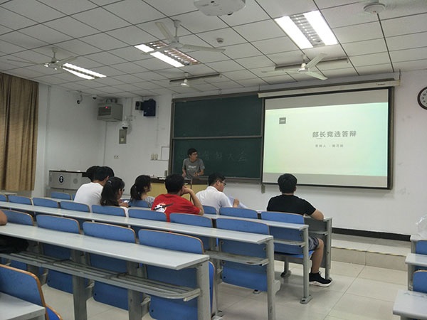 晚上19:00,答辩正式开始。首先,曹鹏老师对各位前来参加竞选的同学给予鼓励与肯定,并希望他们在接下来的答辩中取得好的成绩。之后,答辩正式开始。答辩包括两个部分,首先是自我介绍,可以通过演讲形式介绍自己本学期的学习成绩、获奖情况、参加的比赛以及自己对所要竞选的职位的想法,未来一年自己的一个规划等等。自我介绍结束后,由指导老师,主任向答辩同学进行提问,主要是询问一些对部门的看法和今后对部门发展的一些建议。之后,参加答辩的同学依次上台进行答辩。答辩持续了两个小时左右。答辩结束后,曹鹏老师对本次答辩进行了一个简单的总结,对积极参与答辩的同学做出表扬,也表达了希望心助今后能发展得更好的祝愿。随后,答辩正式结束。