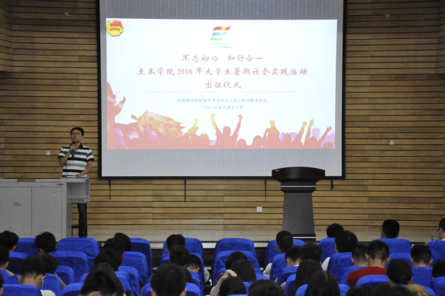 为了保证本学年暑期社会实践工作能够按部就班的展开,7月18日,学院在学院楼A108报告厅举行暑期社会实践出征仪式。学院团委书记游洋负责安排暑期实践各项事宜,16级辅导员曹鹏、17级辅导员李亮、18级辅导员路铭以及学院所有实践团队参加了仪式。