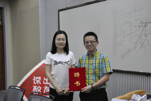 骆奕老师热烈欢迎两位校友在矿大建校109年校庆之际回到母校参加本次座谈会,并为校友颁发“52av