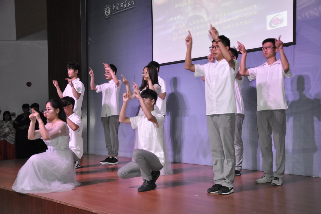 经过初赛的选拔,学院与其他学院共十四支表演队伍进入决赛。比赛开始前,参赛队员们先是到达表演现场熟悉表演流程,经过简单的上下场演练后,队员们在文科楼大厅进行赛前最后一次排练。晚上七点,总决赛赛正式开始。主持人在宣布比赛开始后,每个小组依次上台展示多日以来精心准备的节目。学院心理自助中心带来的节目名为“9:57tmxz”,首先由一名队员上台表演舞剑,表演结束后,手语操表演组队员上台进行手语操表演,经过多日的辛苦排练,两个部分进行了成功的衔接。在背景音乐的烘托下,队员们用灵动的手语和丰富的面部表情为观众献上了一场视听盛宴。最后,学院心理自助中心的节目获得了本次手语操大赛三等奖。