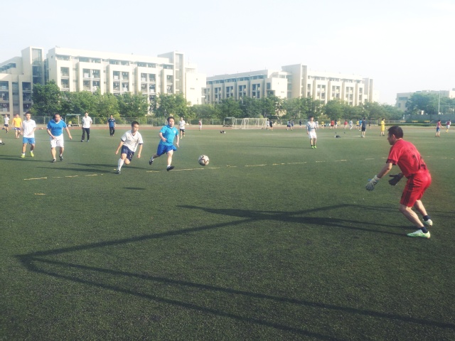 的几名教职工参赛,组成教师代表队和学生代表队在足球场上一同竞技。