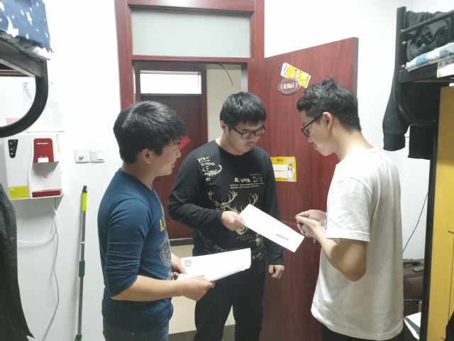 4月11日晚,学院大学生心理自助中心策划部进行扫楼宣传活动。晚九点,策划部全体成员于桃苑三号楼门前集合。经过短暂的分工介绍,扫楼宣传活动正式开始。部员们向同学们介绍了此次活动的详细信息,包括活动背景、活动内容、报名方式、参赛要求,并鼓励同学们积极参与,借此锻炼自己,展现自己,用演讲比赛的形式来增强自己的自信心和表达能力,缓解学习压力,丰富课余生活,让自己以更加阳光的心态面对生活。部员们细致而热情的讲解宣传,让不少同学对此活动产生了兴趣,并且纷纷加群报名咨询。同学们热心的配合使本次扫楼宣传活动取得了良好的效果。