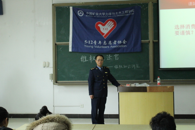 为了呼应国际消费者权益日的主题,3月17日下午三点,学院5·12青年志愿者协会在博一A102举办了维权知识讲座。本次讲座,学院特邀徐州市消费者协会秘书长曹绳月作为主讲嘉宾,为同学们普及维权知识,旨在提升同学们理性消费意识和维权意识。