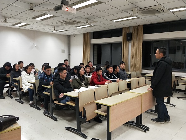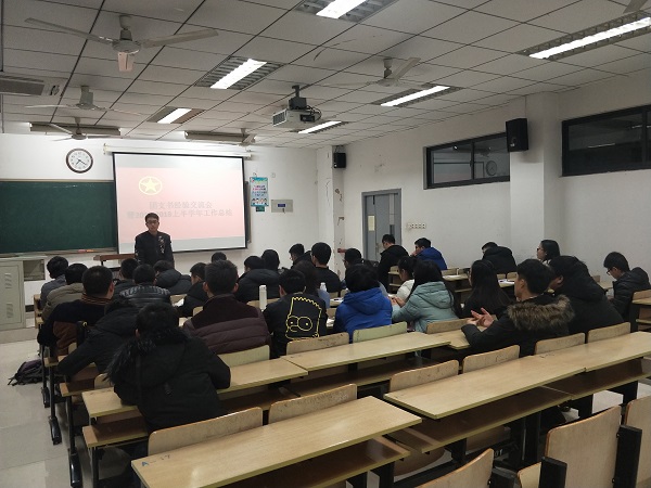 晚7时整,会议准时开始。会议首先由学院团委副书记兰东昊对各班团支书前半年的工作进行总结。在兰东昊的工作总结中,他首先提出了在各团支部刚刚举办过的12.9系列团日活动中存在的问题,如活动形式单一、开办地点单一、人员出勤率低等等。之后,他又根据过去举办团日活动的一些经验与团委老师提出的建议等,针对这些问题提出了一些具体的解决方案,同时也对各团支书提出了更加清晰的工作要求明细。接下来,部分工作做地较好的团支书上台进行关于团日活动的工作心得分享。在他们的分享报告中,与班委的合作、对每一个同学的重视、对团日活动的精心设计这三项被列为了重点。最后,由团委组织部部长对本次会议进行最后的总结,他提出了一些关于团日活动举办的一些建议,同时也对各团支部2018年的工作做出要求与展望。