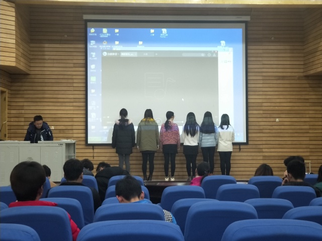晚7时整,二审准时开始。来自学院不同班级、不同学生组织部门的同学们先后上台展现了他们的才艺和创意。最先上场开始表演的是舞协的舞者们,他们用轻妙的舞姿将二审现场的气氛推入高潮。虽有舞协珠玉在前,其他小组毫也是不逊色,此后更是高潮迭起。本次二审展示的节目有令人忍俊不禁的小品“相亲相爱”、“办公室风云”、“神秘岛”,有热情洋溢的歌舞“想把我唱给你听”,有饱含馥郁深情的诗朗诵“闪耀吧,青春的火光”,还有奇特新颖话剧与音乐结合的“江南”等等。同学们各尽其能,创意新奇、方式新颖,充分展现学院学生们多方面发展的综合素养。他们的演出也是让人惊叹不已,一阵阵欢笑声真实地反映了同学们对此的认可。而在每个小组展示后,审核的同学们都会给出建议,帮助改进,努力把学院本次元旦晚会办得更好。