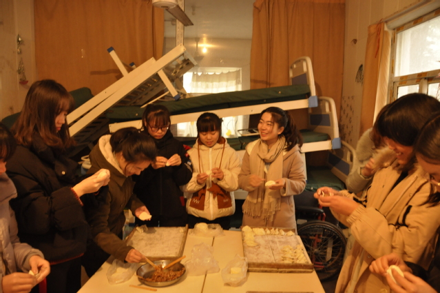 上午八点半,志愿者们准时于学校北门集合,乘坐公交车至康汇托老服务中心。到达活动地点后后,志愿者们首先慰问了服务中心的老人们,向他们表明了自己的来意。 老人们在得知是志愿者前来为他们包饺子之后,每个人脸上都洋溢着幸福的笑容。在服务中心工作人员简单交代一些注意事项后,包饺子活动正式开始,志愿者们认真仔细,尽力为老人带来一顿暖心的午饭。经过两个小时的努力,饺子已全部被包完。志愿者们在收拾完包饺子工具后纷纷来到老人身边和他们亲切地交谈,与此同时,老人们表达了对志愿者们的感谢并告诫志愿者们要努力学习,将来成为祖国的栋梁去建设祖国。在与老人度过这难忘的一上午后,志愿者与老人道别,并且表示会经常过来探望他们,在院长与老人的送别下,志愿者们离开了康汇托老服务中心。