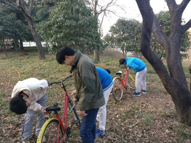 下午三时许,同学们准时于桃苑广场集合。由班长唐浩清点学生人数,确保全体成员都已抵达后,在团支书徐航的带领下到达矿大北门校园通的站点,本次志愿活动正式开始。同学们各司其职,有负责喷除锈剂的,有负责刷洗的,有负责扶稳自行车的,或三人一组,或两人一组,井然有序,不怕脏不怕累,捋起袖子就是干。清洗完毕后,同学们帮助校园通站点的工作人员搬移自行车,将自行车整齐划一的摆在规定位置。值得一提的是,为了做到节约环保,本次志愿活动所使用的刷子工具都是同学们将要遗弃的废旧牙刷。尽管冷风凛冽,但同学们的热情丝毫不受影响。一站完毕,同学们在校园通工作人员带领到达计算机学院旁边的站点,继续对自行车进行清洗除锈。大家干的热火朝天,从大家的笑容中看出了大家通过付出所收获的喜悦。简单的合影留念之后,本次活动圆满结束。