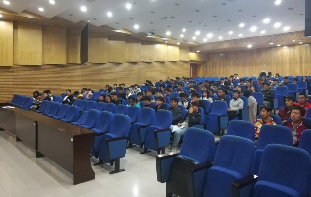 11月14日晚上7:00,学院于学院楼A108报告厅召开了2016级学生干部大会。学院2016级辅导员曹鹏和兼职辅导员蒋恒出席了大会,2016级各班全体学生干部与学院自管会所有成员参加了此次大会。