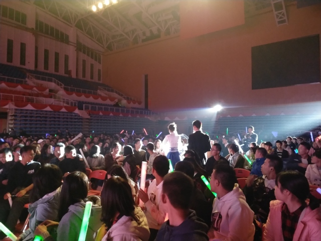 晚上7点,比赛正式开始。主持人介绍本次比赛流程。首先,十四位歌唱类选手依次演唱,由评委进行打分,选手们均为观众带来动听的歌曲,最终八号选手鲁旭冉以9.49分的成绩夺得歌唱类冠军。随后进入抽奖环节,由主持人抽取幸运观众获得奖品。接着,四类比赛冠军为年度总冠军的宝座展开激烈角逐。鲁旭冉的歌曲《意外》深情动人,声乐类表演的《我的一个道姑朋友》宛转悠扬,舞蹈类双人舞《apasionad obaile》热情浪漫,语言类《教你拍马屁》诙谐幽默。选手们的精彩表演赢得评委的一致肯定和观众的热烈反响。接着比赛进入最紧张的时刻,决赛结果的公布。最终,歌唱类选手鲁旭冉用他的动人的声音获得8.00的高分,赢得了年度总冠军。值得一提的是现场的工作人员,在选手表演完时以飞快的速度清理舞台,不惧辛苦、认真负责的态度大家有目共睹,正是他们的默默付出,比赛才得以成功举行。