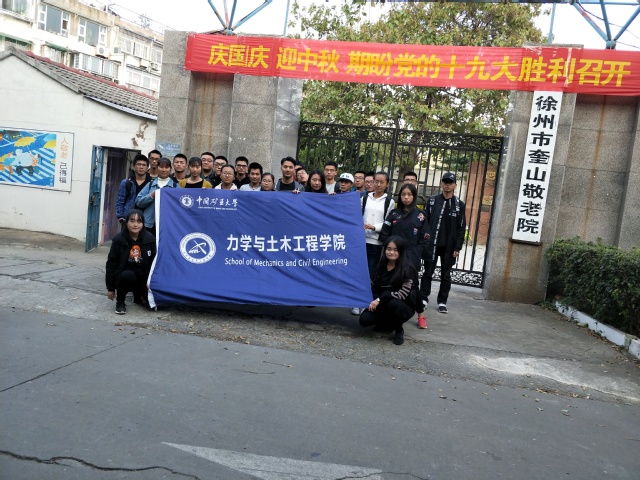 为开展“一学一做”教育实践,学习习近平总书记系列讲话精神、做合格共青团员,11月5日下午,学院团委实践部和青协维权中心成员带领各班团干积极投身志愿活动,携带水果前往徐州市奎山敬老院做义工,为老人分发水果,陪老人聊天并为老人精心准备了歌舞节目,尽最大努力给老人带去欢乐,让老人们感受到来自矿大土木学子的关怀与温暖。