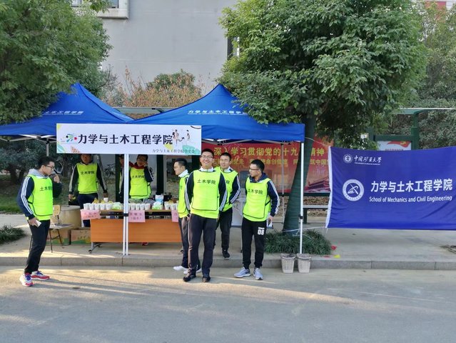 据悉,本次比赛共有1575名选手报名参加本次比赛,创下历史新高,其中包括徐州各高校的学生和社会各个群体。早上七点,学校体育部的工作人员提前到达服务点布置服务站,大家穿上整齐的绿色小马甲,成为现场一道靓丽的风景线。学院负责人将工作人员分成两组,一组同学负责架帐篷,搬桌子,另一组同学学院服务站为参赛者提供水果,温糖水。比赛开始后,大家一起为参赛者加油鼓劲,让这个只有八九度的校园充满温情。