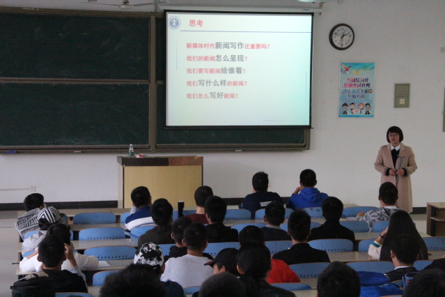 下午2点,培训会正式开始。首先,李秀老师讲述了在新媒体时代新闻写作所处的位置及其重要性,希望大家能够认清并且重视新闻的价值。随后,李秀老师向大家介绍了新闻的定义及新闻体裁的分类,让同学们掌握新闻写作的基础知识,为今后的新闻写作奠定了基础。接着,李秀老师着重强调消息与通讯的写作方法和具体要求。介绍了一篇完整的消息报道应该有的结构和组成成分,用具体的例子向大家展示了标题的艺术,列举出同学们在新闻写作上存在的问题和改正方法。在场同学无不专注,纷纷记下笔记。关于新闻写作部分培训结束后,李老师传授给大家新闻拍摄的技巧,包括如何构图、怎样选取角度、光线对照片的影响等,分享了自己在新闻写作与拍摄工作中的经验和体会,提醒同学们避免出现类似的问题,让大家对新闻写作有了更专业的了解。最后,培训会在大家的掌声中结束。