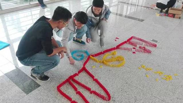 “百变骨牌”多米诺大赛培养了学生们的动手实践能力,融入了党的十九大精神和元素,在让学生们体验搭建骨牌乐趣的同时,还增强了学生们团队合作意识,为同学们提供了展现自己创意的舞台,丰富了学生们的课余生活。