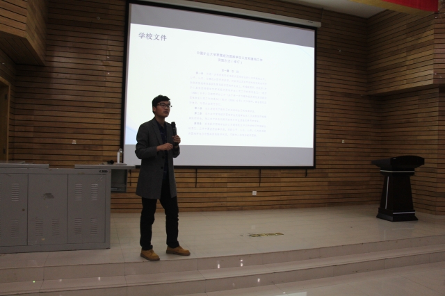 下午5时整,大会准时开始。首先,2016级辅导员曹鹏老师对全体参会同学介绍了“建档”、“助学金”和“学费减免”等概念。接着曹老师又对国家励志奖学金的内容、申请规则和评价要点进行了深入的讲解,通过展示一系列校级、院级文件,使与会同学们详细且清晰地了解到对国家励志奖学金及助学金的评定要求“成绩优秀、不得挂科、不得违反校规校纪、达到要求的素质测评和志愿时长”等一系列硬性规定。之后,曹老师向参会同学介绍一系列平台及活动,使参会同学了解到“奖助勤贷补减偿”多位一体的学生资助体系已趋于完善,希望同学们在毕业后避免较大的经济压力。在曹鹏辅导员主持会议的最后,他向全体参会同学表达美好祝愿,他期待明年能遇见更好的在座学生。紧接着,学院尚恩服务分队队长候彬在通过向参会同学展示的活动照片及内容的基础上,使参会同学了解到服务分队的办公室、校外行动部、校内行动部等一系列组织架构。此外,侯彬同学也在最后环节附上了服务分队的招新计划,鼓励建档生积极报名并加入服务分队。在本次大会结束之前,候彬同学不忘向2017级同学介绍四年大学生活的规划,并鼓励2017级的同学们可以度过充实且有意义的大学时光。