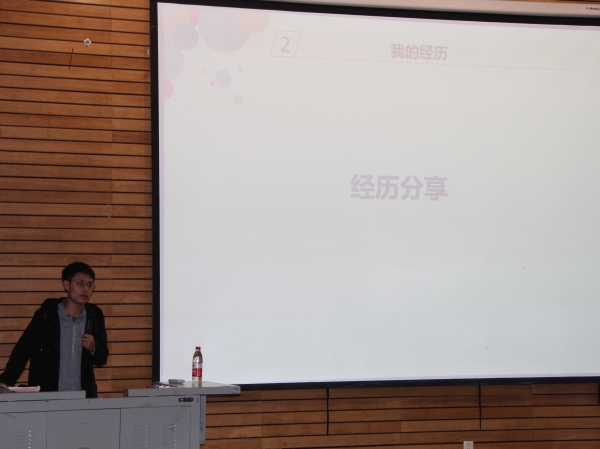 据悉,本次新老生交流会的三位主讲人都是学院2015级的优秀的学生代表。第一位主讲人黄瑞珂,是学院学生会主席,个人发展均衡,综合素质很高;而李天成、徐英俊均是国家奖学金获得者,在科研竞赛方面成绩突出。