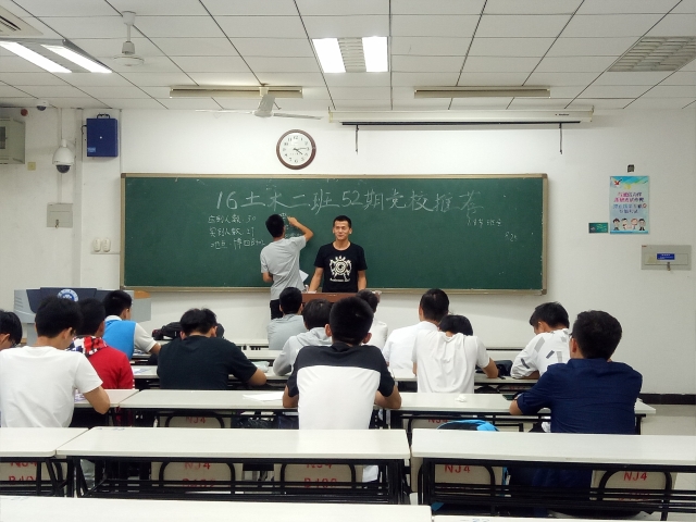 为了更公平的选出第52期入党积极分子,保证日后各项工作的顺利进行。9月25日,学院土木工程2016-02班全体成员在博学四号楼B402举行第52期党校推荐会议。