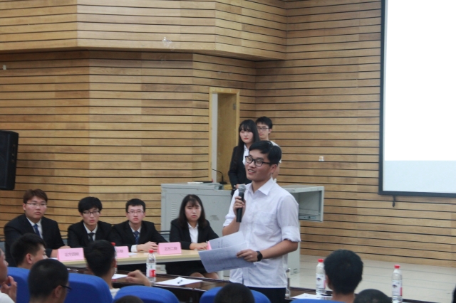 现场辩论过程中,不乏有一些妙语连珠,引得全场新生观众笑声一片。看到现场新生的回应这么热烈,在辩论表演赛结束后,学院组织部特地为新生提供了一个向场上的辩手提问的机会。现场新生情绪激昂,积极地参与到互动中,向辩手们提出了自己对辩题的认识和看法。最后,由两位辅导员对本次新生辩论表演赛进行总结,并提出了自己对未来辩论队发展的期待,积极鼓励新生加入到学院辩论队的集体中。