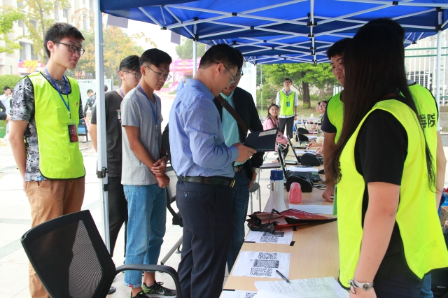 为确保学院2017级新生信息的录入工作顺利进行,9月7号上午8点,学院党委书记吕恒林、党委副书记张庆春,团委书记倪涛涛等多位学院领导老师,前往桃苑广场的迎新点,对新生的迎新工作进行检查与指导。