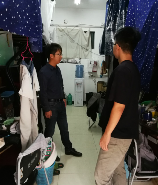 上午9:00,宿舍检查活动正式开始。辅导员老师们分头行动,分别对桃苑3号楼A、B区的宿舍进行了全面的检查。在检查过程中,老师们对每个宿舍的卫生进行了细致入微的检查,并记录具体的情况。老师们认真指出宿舍存在的问题,包括地面清洁、桌面清理、食物储存、衣物晾晒等,并且提醒新学期要参加补考的学生抓紧时间好好复习,争取补考一次性通过。