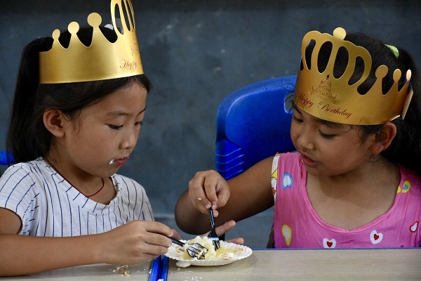 首先,主持人伴随着激情飞扬的音乐上台,宣布仪式开始,整个庆祝活动拉开了序幕。在第一环节中,伴随着《运动员进行曲》的音乐声,三分队队长王建军和副队长齐春滨代表全体支教队员进行开场演讲,紧接着第二环节,随着《出埃及记》的背景音乐,队员们将蛋糕搬到各班班级队伍前方,拍摄完集体照后,各班由班主任带领回到班级,老师将蛋糕平均分好发给每个学生,当生日乐章想起,蛋糕上的烛光一支支闪烁起来,孩子们的心也跟着一起沸腾,大家闭上双眼、十指相扣,在摇曳的烛光中郑重许下美好、纯真的心愿,他们同样以独特的方式告诉老师:“雏鹰已经展翅,他们必将振翅高飞、凌空翱翔、迎接风雨、搏击长空”!仪式结束后,孩子们蜂拥而上,尽情享受美味佳肴,拿在手里,吃在嘴里,吃完后还冲到老师身边将蛋糕抹在老师脸上,与老师之间展开蛋糕大战。