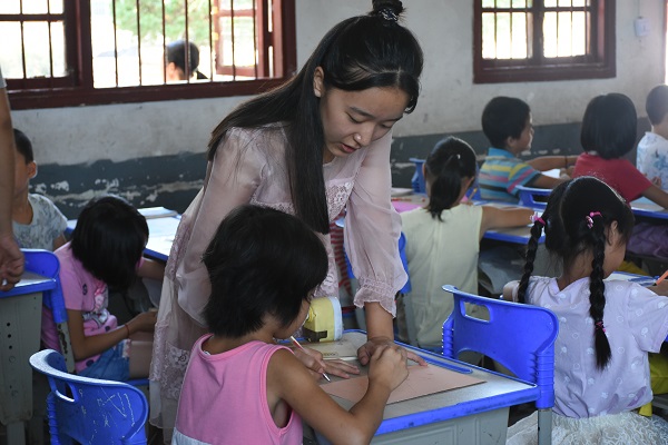 7月26日上午十点半,学院筑梦公益三分队队员赵潇艺及包佳欣在龙盘小学二班进行了一节制作生日帽的手工课。据悉,“集体生日”活动是三分队的特色活动,主要内容为由支教队员们为所有孩子们一起举行一场生日会。根据策划案,除了蛋糕、教室装饰的准备之外,孩子们还需要一顶生日帽。为了让孩子们更大程度地参与到本次“集体生日”活动中,同时提升孩子们的动手能力以及想象创造能力,两位队员决定教孩子们自己去制作设计一顶独一无二的专属生日帽。