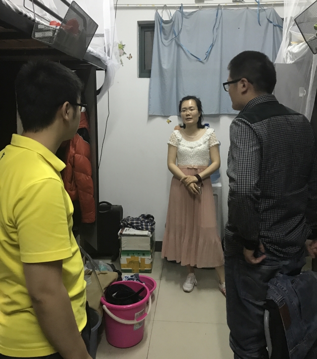 会议结束后骆老师和沙老师带领学生干部走访学生宿舍,了解同学情况,提醒大家注意安全问题。