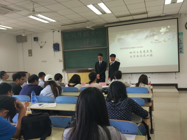 5月26日下午,学校各大学院的新闻传播中心工作者聚集在教一A202,就优秀院级大学生传媒中心的评选进行工作汇报和答辩,学院积极参与其中。本次答辩邀请到校党员宣传部新闻宣传科科长李秀老师,学院新传指导老师刘晴和其他学院传媒中心指导老师担任评委。